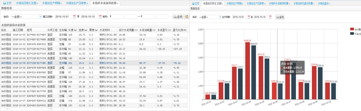 物料核算管理主要包括水穩(wěn)料核算、混凝土核算、瀝青核算、分項工程管理、混合料核算、原材料核算、庫存核算等功能。